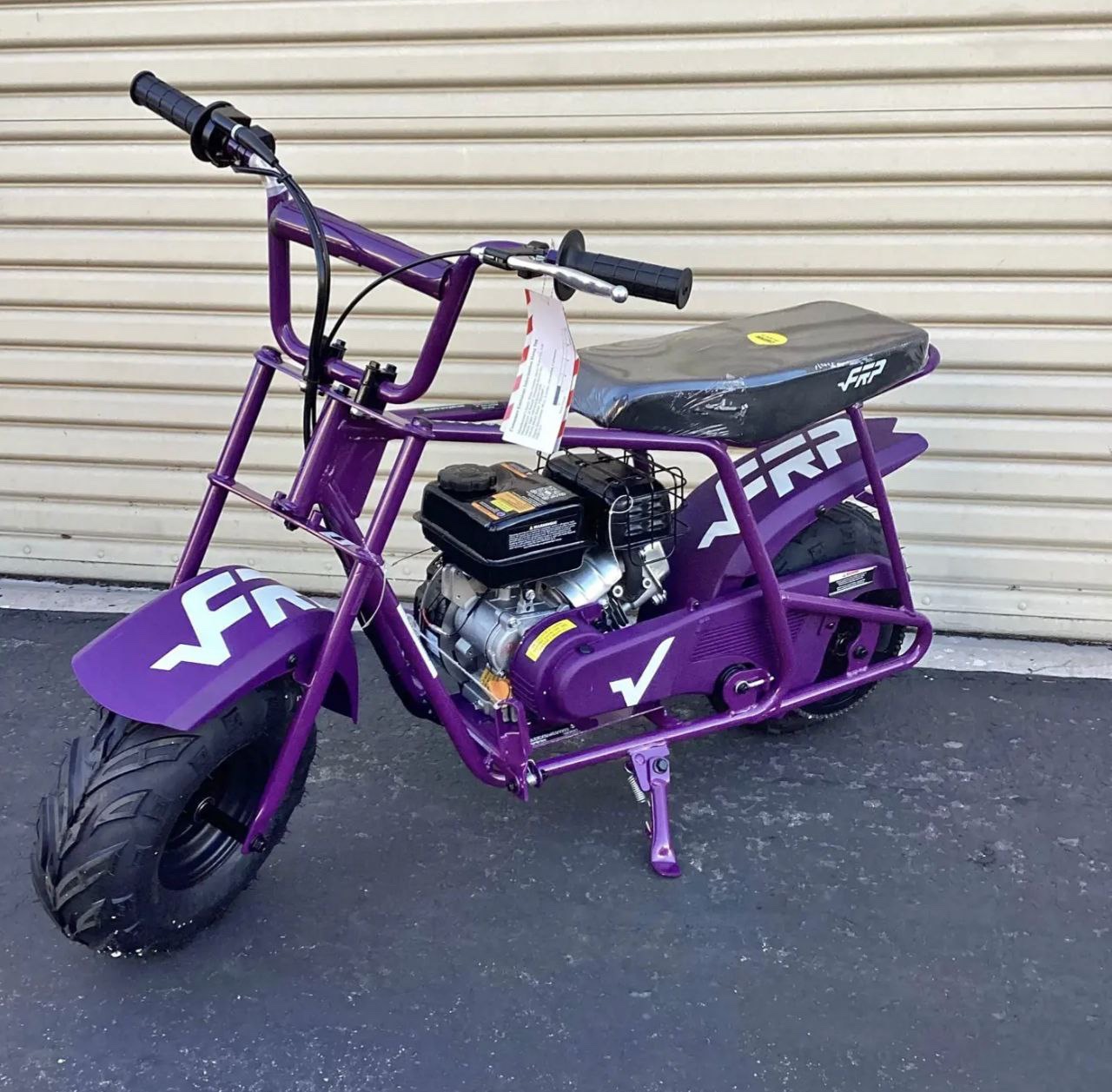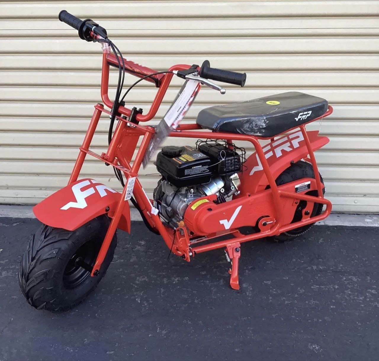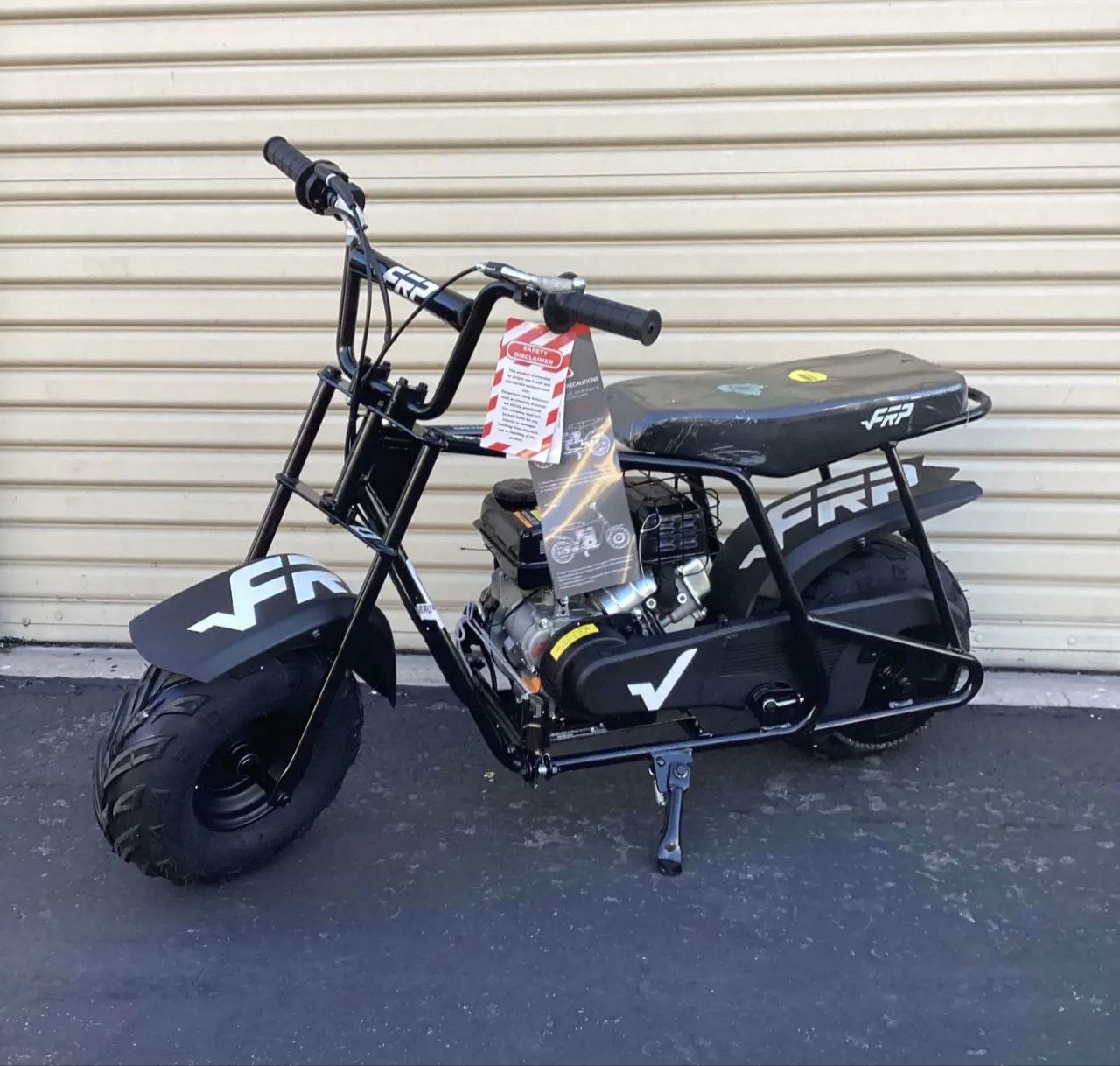 Compact, powerful, and built to perform. The FRP minibike features a rugged frame, fat tires for superior grip, and smooth reliable power for street or off-road riding.