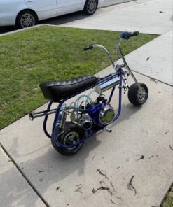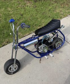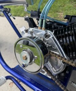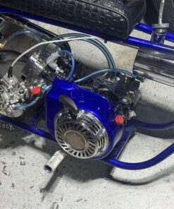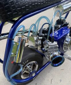 Premium show-quality GTS mini bike featuring a 4-stage powder-coated frame, extensive chrome and billet upgrades, and a fully built 212 performance engine. Equipped with Mikuni 28mm carb, Hoosier slicks, and custom JB alligator seat — built for both standout looks and serious performance.